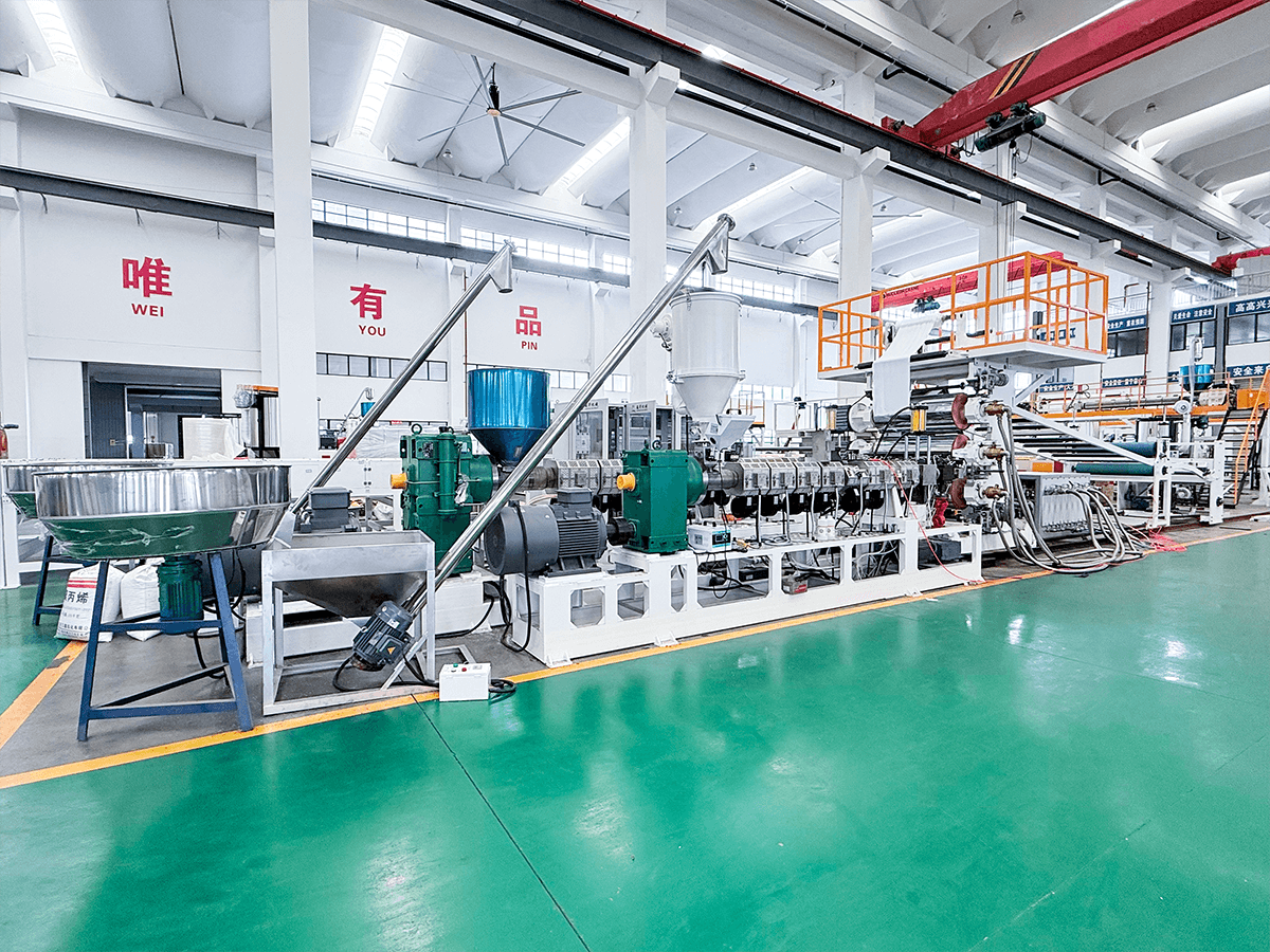 Эта производственная линия в основном используется для производства пластин из АБС-пластика для чемоданов и производства пластин из сплава АБС/ПК одновременно для производства обычных пластиковых экструзионных пластин для других целей.